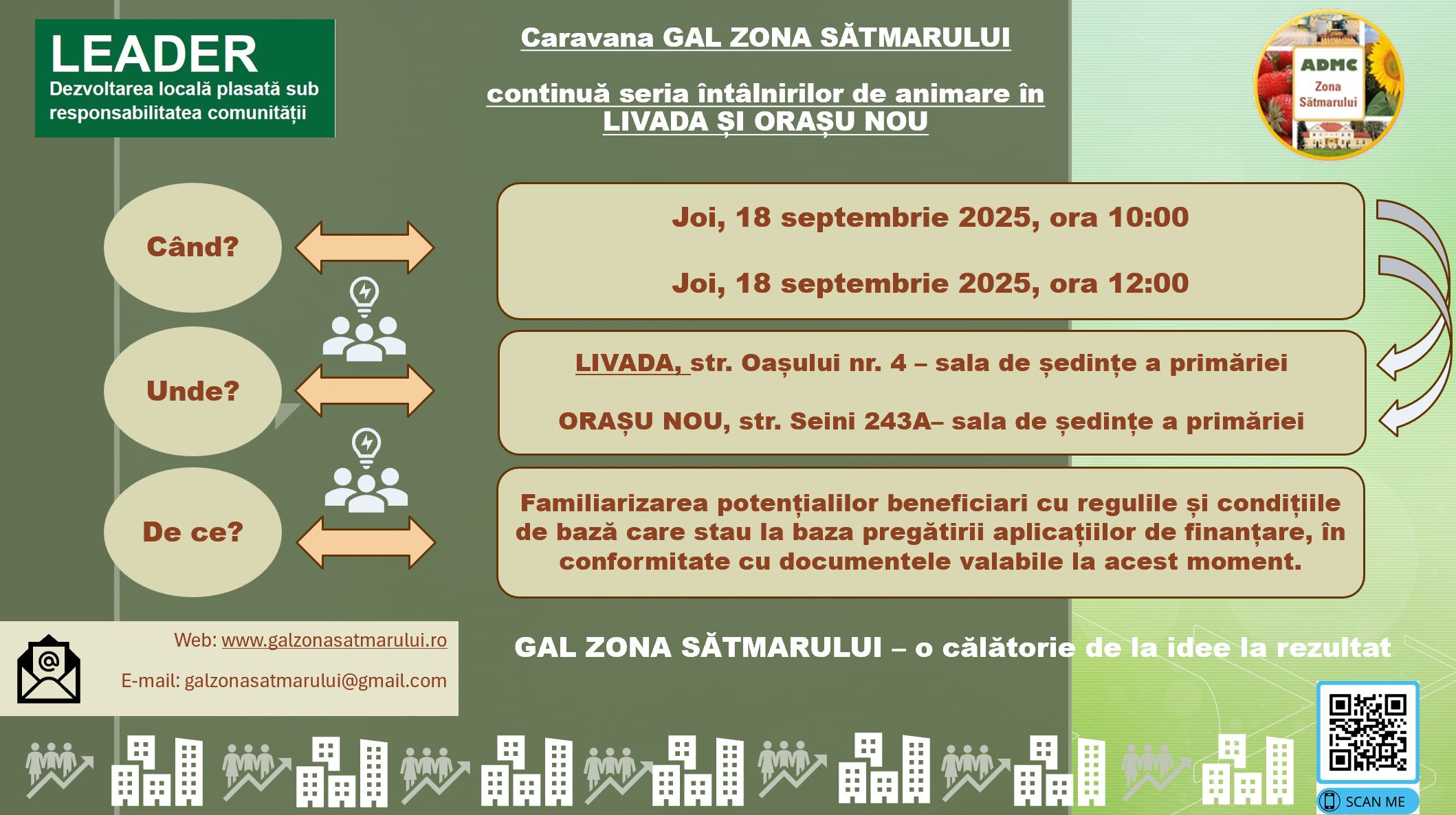 Joi, 18 septembrie 2025, vă invităm să luați parte la întâlnirile de animare organizate de GAL Zona Sătmarului!